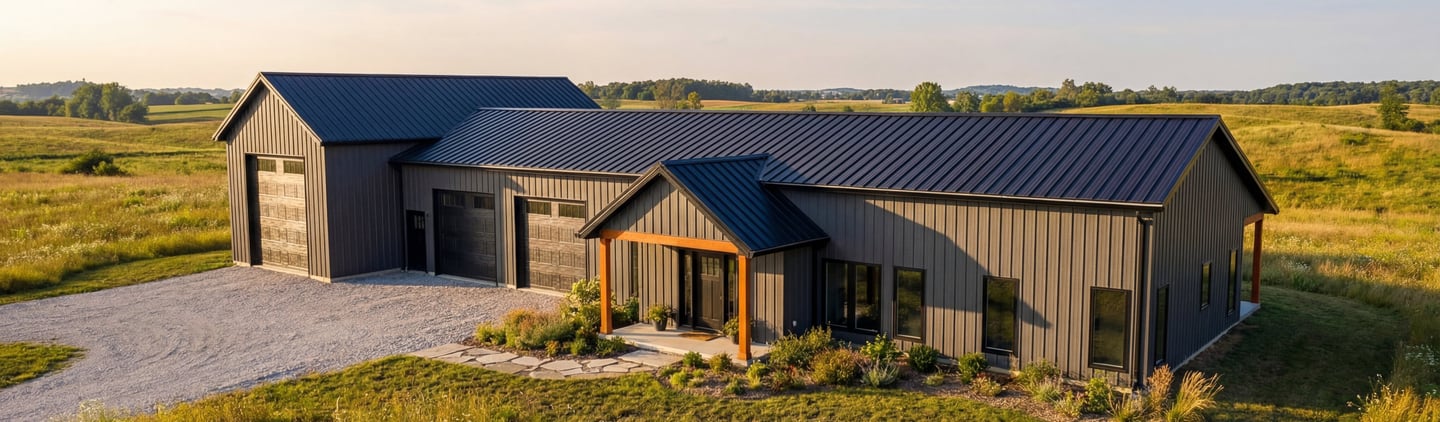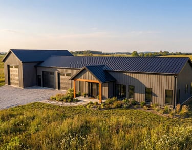 Custom post-frame and stud-frame barndominiums built turnkey — engineered, framed, and finished.